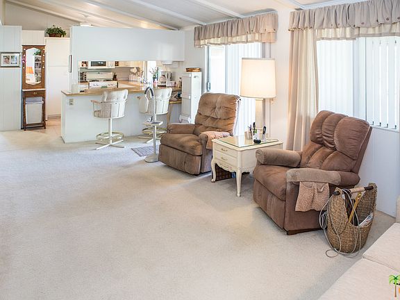 Spacious Double Wide with 2 Car Garage. This one is clean as a whistle. This home comes with 2 Bedrooms both with on suite baths, a spacious laundry room with built in desk, a Beautiful Kitchen with Breakfast Bar leading in to Large Family room. The family room leads in the tiled rear patio with all the privacy you'll want. This one has 1512 square feet, but feels even larger. Desert Sands offers an exclusive gated senior community with club house, pool, spa, sauna, exercise room, card room, pool tables, kitchen, and onsite management. Space rent for new buyers is 747 per month.