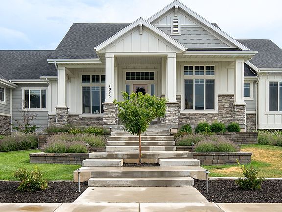 NEW PRICE: Incredible value on this luxurious home on a fully landscaped acre of land with STUNNING views! You'll love the custom craftsman style with a blingy flair of sparkle! The custom china hutch matches the FUN style of the front door. You'll love the bi-fold patio doors that open to the upstairs deck, as well as the bi-fold doors in the home gym to let in the breeze while you work out. Elegant fireplace with custom stonework to the top of the vaulted ceilings, and over $50,000 of custom lighting fixtures really put the BLING in this home. 100% fully landscaped yard currently has a HUGE gas fire pit and pavers area for all your patio furniture, 2 waterfalls, as well as brand new ground cloth and dark bark recently installed. The in-ground trampoline, and full professional sand volleyball court will keep the kids (and adults who are kids at heart) busy and active! The property has all of the bells and whistles (10-foot ceilings in the basement, in-home gym, upgraded appliances, huge pantry, and high end finishes and trim work throughout). The Grand Kitchen, Dining and living area, and basement family room offer tons of space for entertaining friends and family. The kitchen has a massive island, with floor to ceiling custom cabinetry. The home also has 2 heaters and 2 A/C units, HUGE soft water system, LED lights throughout, extra insulation, and more! The owners are almost empty nesters and no longer need a massive house and yard.