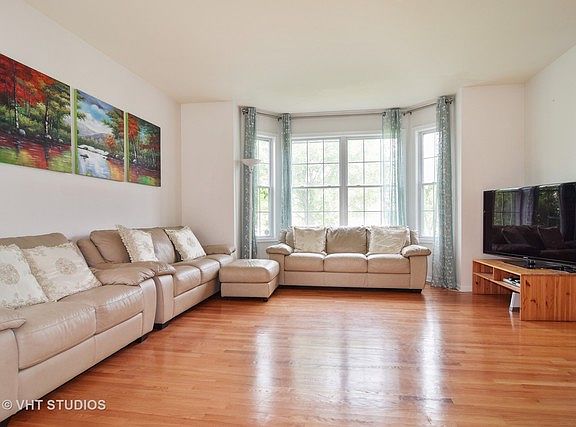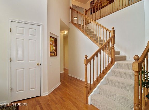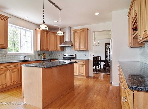 Wonderful Luxury newer home! Fremd High School 1/2 mile away. 3200 square feet brick/cedar home on a large lot (1/3 acre) with a fenced in yard. Hardwood floors+9 ft ceilings on the entire 1st and 2nd floors. New high end kitchen in 2010 with maple cabinets, granite counters, center island, all stainless appliances, high quality exhaust+separate eating area. 1st floor bedroom/office with built in book case and full bath. 5 large bedrooms with master suite, whirlpool, spacious walk in closet, double sinks, and separate shower. Three full and one half bath. High efficiency furnace and 75 gallon hot water heater new in 2010. Large living room with bay window. Large dining room with tray ceiling and crown moldings. Family room with gas start white brick fireplace. 2 story foyer entry. Terrific location. White trim and 6-panel doors. Full finished basement with 1/2 bath+rec room. Dog run. 2 apple +pear tree. Security cameras installed. Palatine metra train only 1.3 mile away. 4 minute drive