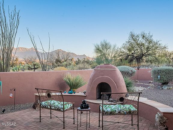 Perched majestically atop a serene hill, this astounding home spans nearly an acre of pristine land, offering breathtaking views that stretch out in every direction. As you step through the grand solid wood door, you're welcomed into an expansive great room that showcases a stunning wall of glass, inviting the beauty of the outdoors in and flooding the space with natural light. The room is further enhanced by a charming Kiva-style fireplace, providing a cozy focal point and infusing the space with a warm, southwestern ambiance. Adjacent to the great room, the traditional dining room exudes elegance with its ornate post and beam architecture and classic tile ceiling, softly illuminated by backlit lighting that enhances the intricate details of the decor. The heart of the home, the dream kitchen, is a culinary masterpiece featuring dazzling granite countertops that glisten under the ambient light, a spacious prep-cook island perfect for gatherings, and top-of-the-line stainless steel appliances, including double ovens for the aspiring chef. The kitchen is adorned with ornate wood posts and robust wood beam ceilings, creating a perfect blend of functionality and aesthetic appeal. A delightful eating nook nestled within bay windows provides the ideal spot for casual meals while soaking in the picturesque views of the surrounding landscape. Retreat to the expansive master bedroom suite, a tranquil haven that boasts a cozy sitting area with a charming bay window showcasing verdant views. A garden door conveniently opens to the covered patio, allowing for seamless indoor-outdoor living. Indulge in the luxury of the master bath, featuring separate "his and hers" granite-topped vanities, a spacious tiled shower, and a sumptuous soaking tub designed to offer relaxation and rejuvenation at the end of the day. For those who crave a quieter space, the den presents an inviting option for a reading nook or a private office, providing the perfect backdrop for productivity. Outside, the home truly shines with remarkable outdoor living spaces spread across the sprawling .91-acre lot. Choose from multiple sitting areaswhether it's the north patio, the east patio, or the south patioeach offering panoramic views that invite you to bask in the natural beauty around you. The thoughtfully placed outdoor gas fireplace creates a cozy gathering spot where you can enjoy the enchanting vistas of the Santa Rita Mountains while relishing the soothing warmth of the fire. This property is nothing short of a picturesque paradise, waiting to be called home.