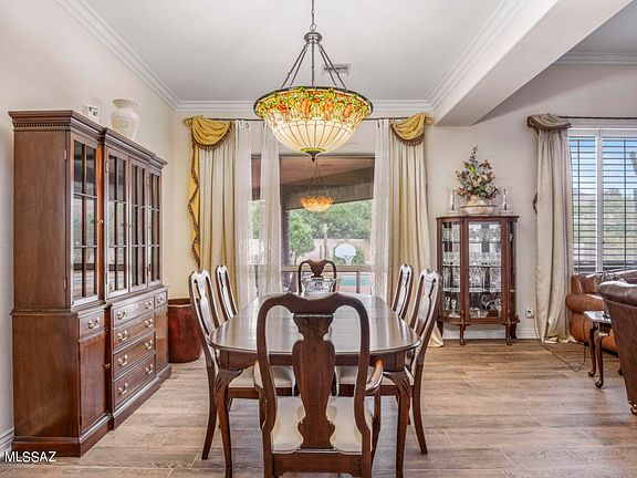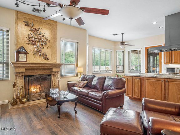 Fabulous Oro Valley homestead on over 2 acres! Rare opportunity to own 2 lots in the highly sought after community of Logan's Crossing. Enter through a beautiful courtyard and be amazed at what this home has to offer: Soaring ceilings with crown molding, 9'' x 40'' wood like porcelain tile through out, gourmet kitchen featuring a gorgeous 12 ft granite island, a Blue Star 6 burner plus griddle gas range with double oven, commercial grade exhaust, 57 bottle wine refrigerator and a Frigidaire Gallery refrigerator. The custom fireplace has a magnificent formed concrete mantle that is sure to impress. This grand home was a former model and has been lovingly upgraded and improved. Most windows have been replaced and the home has been re-plumbed. Relax your cares away in your backyard oasis!