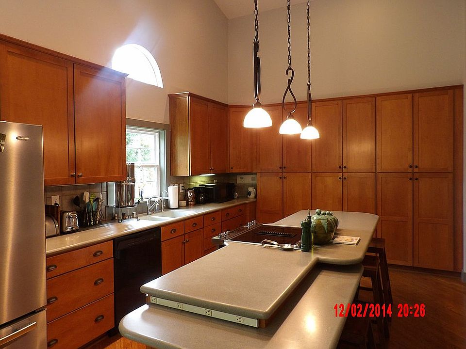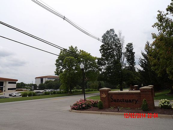 One family has built and owned this home since 2003. New Roof Aug 10, 2023. Convenient to I-64 and Blankenbaker Parkway, The Sanctuary villas are across the street from the spacious Southeast Christian Church campus. Comprising 61 all-brick condominiums, this lovely residence is a two-level walkout home located between a wooded easement and the county road. The exquisitely customized Citadel floor plan has over 4000 square feet of living space with vaulted ceilings on the main floor and 9-ft. ceilings on the lower level. The custom woodwork is featured and 5-panel doors with brushed nickel handles provide ease of access. At the entrance is a companion bedroom and bath suite with 3-ft doorways, and a pocket door for privacy. Herringbone hardwood floors lead to a tiled gas fireplace with a custom oak mantel. Opening onto the professionally designed open kitchen lined with maple cabinets and base drawers, you will love to cook and entertain with this spacious island topped with Corian countertops. Off the breakfast room is a screened and glass-enclosed porch. The primary suite is spacious with a walk-in mirrored closet and the primary bath has a newly tiled walk-in shower and Japanese soaking tub. The first-floor office can also be a bedroom enclosed by French doors. A separate laundry space leads to the 2-car garage with attic space and access to the stairwell. The lower level wet bar has new luxury vinyl plank flooring leading to a file room and a utility room, enclosing a 5-ton HVAC system, a 75-gallon water heater, both installed in 2022. The electrostatic air cleaner, humidifier, and water softener add the finishing touches. The den is large and faces a tiled gas fireplace and opens to a flex space where a possible fourth bedroom could be added. The large bonus room is adjacent to a tiled full bath with two large closets. Many updates include a newly completed 200 sq. ft sound-proofed studio and a glass-enclosed sun porch leading to a private patio.