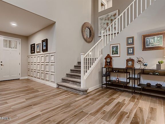 Own a professionally designed model home complete with private pool! The Copper Prairie elevation features a welcoming front porch, upstairs owner's balcony, 4 bedrooms, 2.5 baths and a 3 car tandem garage. Designed for entertaining and a spacious feel, this home opens up with a romantic staircase and formal living room with a soaring ceiling! It transitions to the open-concept dining area, family room and large kitchen. Upstairs is made for living with a lofted game room, walk-in laundry area and dual closets in the owner's suite. See a complete list of upgrades in the Documents tab. The Eastmark community is renowned for quality living with nearby stores, excellent schools and community amenities.