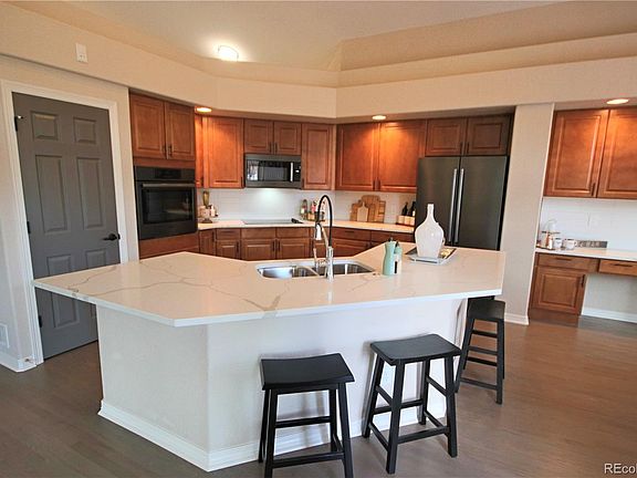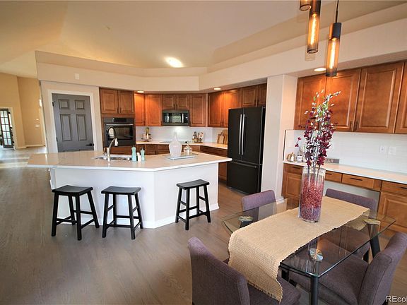 As you enter this beautiful home youll notice the high vaulted ceilings that allow natural light throughout the main floor. The hardwood floor throughout the entire main level is very rare! The open floor plan wraps around the lofty master bedroom with roomy walk-in closet. The luxurious master bath is an light-filled oasis with a spacious soaking tub that you can relax in for hours, and elegant custom tile that is floor-to-ceiling in the walk-in shower. Spending time in the kitchen will be a pleasure with gorgeous white quartz countertops, vast amounts of cabinet space, and high-end slate appliances (no fingerprints!), a large island and breakfast bar, and an integrated dining nook. Youll enjoy dinners at the formal dining room with custom lighting and plenty of room to host all your family and friends. You can also unwind in the open and bright living room around the three-sided fireplace very cozy in the winter! The study/third bedroom on the main floor has French doors, vaulted ceilings and lots of natural light ideal for working from home! Basement has a bedroom and separate den attached to a 3/4 bath. Much of the basement is unfinished and ready for your customization, perfect for a kids rec room, home theater, yoga studio, endless storage, or whatever your imagination allows! The second bedroom on the main level has an en-suite 3/4 bath. The whole family can enjoy the private backyard with terraced landscaping, sprinkler system, and mature trees. A large open space to the south is HOA owned and maintained, and provides increased privacy. A three car garage will allow plenty of room for a golf cart so you can drive down to the nearby clubhouse, or provide storage space for all your toys. Lot\'s of open space and parks with miles of trails nearby.