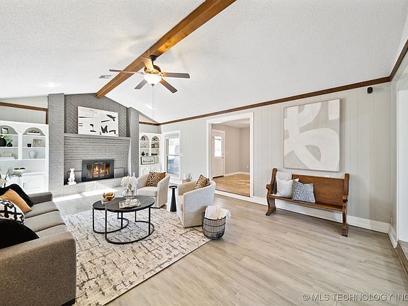 Discover this beautifully updated home located on just over 2 acres in Owasso! With NO HOA and plenty of room for your chickens and other farm animals, this property is a dream come true! The primary suite features a sitting room or exercise room, separate closets, and in the ensuite bathroom there is a beautiful clawfoot tub & separate shower. Updates include new flooring in guest bedroom, re-textured some ceilings and walls, new paint, new countertops in kitchen, new kitchen sink & faucet, new brick backsplash, new cooktop and exhaust hood, new dishwasher, and the microwave and refrigerator stay! Windows were replaced in October 2020, hot water tanks replaced in 2018, new flooring in 2023 & 2024, and septic tank pumped in 2024. Key features are the 2 shops located on the property, both have multiple overhead doors for easy access and feature concrete flooring and electricity. The red 30X60 shop was recently built and holds plenty of space for your lawn equipment, boat, ATV, cars, etc. See the full list of upgrades/improvements in the documents.