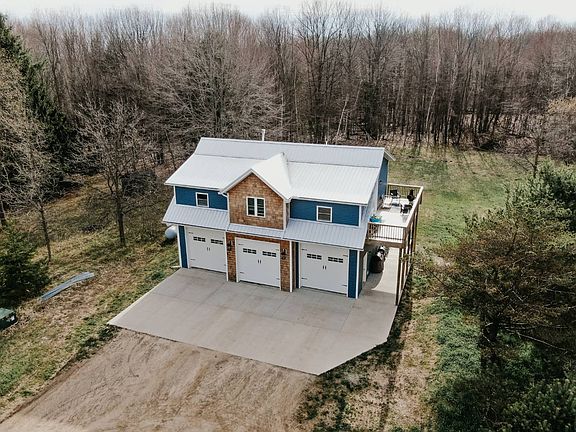 Positioned on 20 acres just outside of Clare Michigan this carriage house style home is perfect for someone looking for modest living space, without sacrificing high end touches. Constructed in 2017, this home is virtually brand new with a great farmhouse aesthetic. The lower level is a fully finished and insulated 3 car garage with in-floor radiant heat, and a half bath with laundry. It is the ideal space for a year round workshop or entertaining guests. The upper level is a 1,100 square foot apartment laden in hardwood plank flooring with tongue and groove shiplap on the walls. The commodious master bedroom comes equipped with massive walk-in closet and side room perfect for a nursery or office. The open floor plan lends itself to easy flow from room to room while french doors open to a spacious elevated deck. The property itself provides plenty of privacy from the road and has no shortage of wildgame species for viewing or hunting. This property is less than 2 miles from downtown Clare, but still with a very private rural feel. Very rarely, if ever does a property like this become available in this area. Don't miss out.