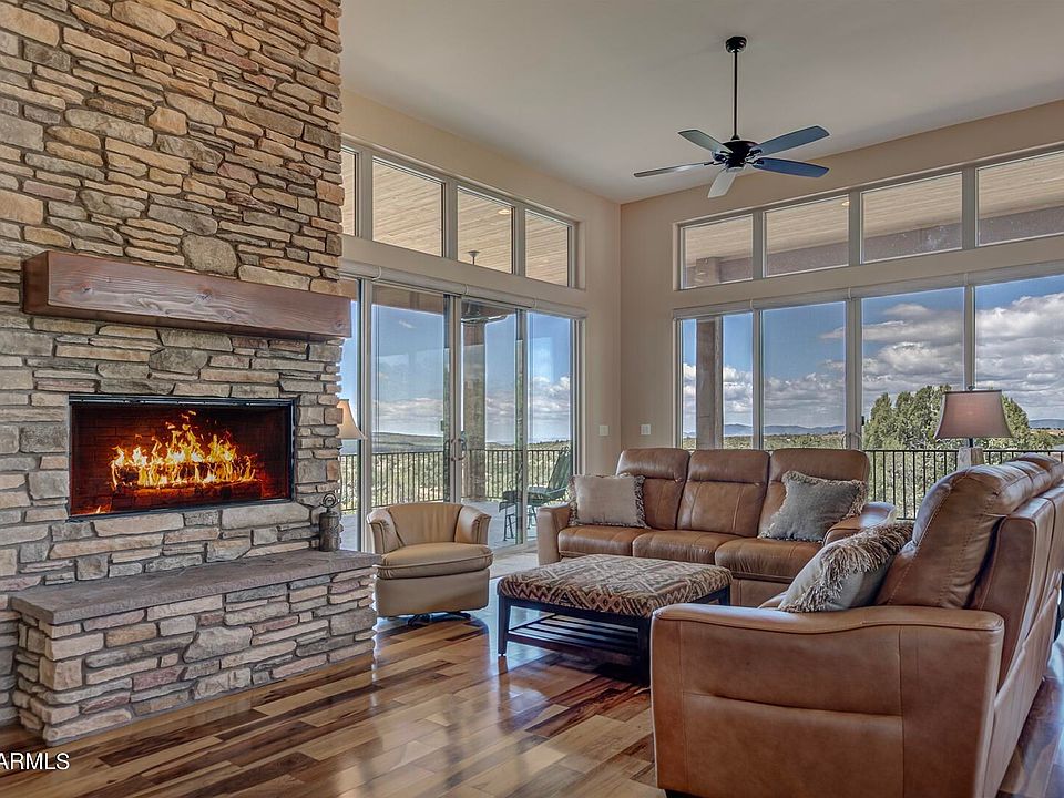 This Stunning & Remarkable MOUNTAIN ESTATE sits amongst 5 acres of beautiful forest and is nestled against the boarders of the Tonto National Forest. As you arrive you are immediately breathless by the aw-inspiring views & the quiet serenity of the property. When you enter this brilliantly crafted home you will instantly see the high-quality finishes and designs that were used to create this masterpiece that was built in 2017. With two Master Bedrooms with ensuites and a third bedroom and bathroom for additional guest, there is plenty of room for family and friends. Beautiful wood floors draw you instantly down the hallway to the amazing open concept great room and kitchen. The kitchen is a chefs dream kitchen with its oversized granite island, gas cook top and double ovens. Custom cabinetry all with self-closing drawers and doors, which are through-out the house, really showcases the high-quality this home was built with. Every room inside has breathtaking views, but the entertaining on the large deck with views and privacy will be your choice for the beautiful sunrises and sunsets. This Mountain Estate offers a perfect blend of elegance, functionality, and stunning surroundings. No HOA
