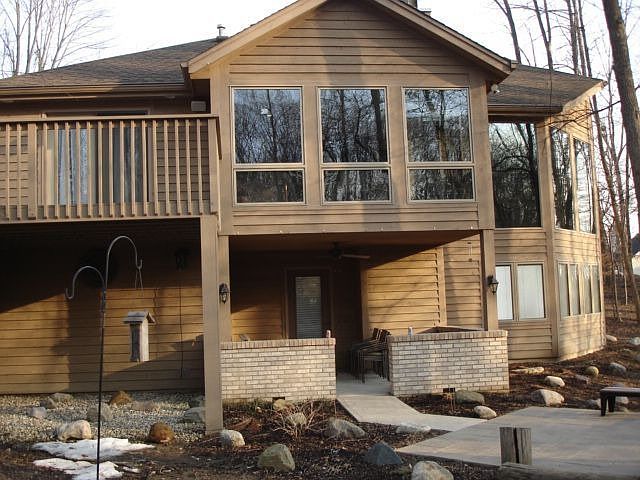 Listing Summary Listing #2703563 $349,900 (LP) Price/SqFt: 183.10 10430 Woodland Ridge West, Fort Wayne, IN 46804 Active (03/14/07) CDOM: 308 Beds: 3 Baths: 3 (3 0) (FH) Sq Ft: 1911 Lot Sz: 0.000ac Area: AL06 Age: 5 Remarks If you want custom everything look no further! This villa located in the Hamlets has a unique open floor plan with 9' ceilings. Whole house surround sound. Kitchen boasts custom Harlan cabinets, double ovens, smooth-top range, fridge, built-in microwave, large pantry & island w/vegetable sink, ceramic tile floor. Master bedroom has double glass door to deck, large bathroom w/double sinks, jetted tub, shower & walk-in closet. French doors lead to 4 season room w/lots of Pella windows & access to deck w/sunken Master Spa hot tub & speakers. 4th BR is den & has built-in desk/cabinets/bookcase, window seat & French doors. Great room has wall of tinted energy efficient windows & fan. Stairs lead to finished walk-out LL w/family room, bedrooms, full bath, large rec room & wet bar w/cabinets, mini-fridge & microwave. Stone gas log fireplace, built-in bookcase, bench storage, floor outlets. W/O to covered portico & beautiful stamped concrete patio. Room listed as 4th bedroom is an office. Neighborhood Description Villa Comunity