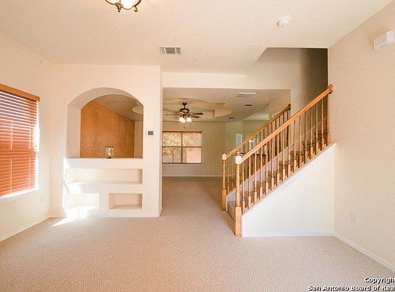 Move right in & unpack your bags. Nothing else is needed. This beautiful & spacious 4-bedroom home with an open floor plan is on a greenbelt & a cul-de-sac & is in perfect move-in condition. You will love the large bedrooms, the great closet space, the oversized kitchen with a refrigerator, the covered patio with tile flooring & the large storage shed. Lots of ceiling fans, blinds on all windows & great privacy. Good schools, great location, close to major highways & shopping. Easy commute to Lackland AFB.