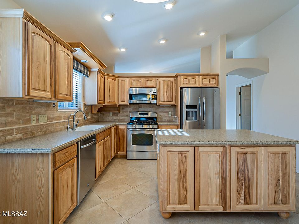 Beautifully updated and well maintained home located in Rita Ranch! Some of the owner's favorite attributes are the open floor plan, beautiful sunsets and mountain views, easy care landscaping, and proximity to amenities. Kitchen is updated, bathrooms have been remodeled, and owner has made numerous improvements. throughout the home. Ceramic tile- no carpet, hickory cabinets, upgraded appliances, whole home water softener, reverse osmosis faucet, newer HVAC system, Hunter Douglas custom blinds, and termite warranty! Come see this beauty before it's gone!