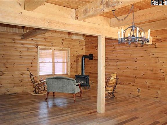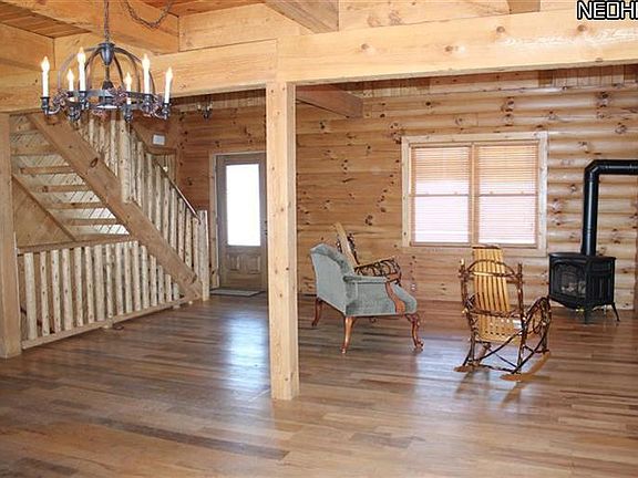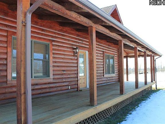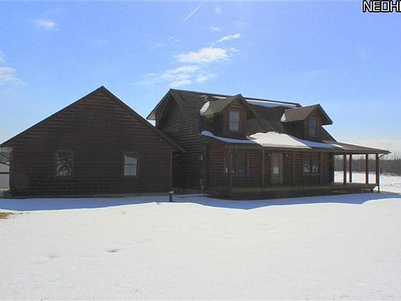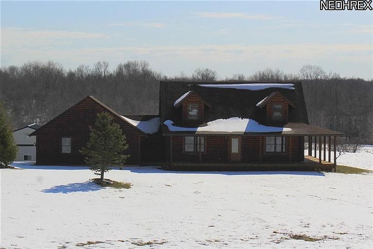 Custom built log dream home! Built with 11 round logs, attention was paid to every detail. Kitchen is ideal for entertaining with stainless steel appliances and plenty of counter space. Spacious and open first floor living space with vaulted ceilings. Enjoy panoramic views of glorious wide open spaces! Retreat to the first floor master suite. Suite features huge walk in closet, spa tub and double sinks. 2nd floor loft offers possibility to be finished as 4th bedroom! Large basement is partially finished and possibilities are endless. Ideal first floor laundry/mud room with plenty of storage. Sit back and enjoy the views on covered front porch or back porch. Outbuilding can be used for any hobby you so desire and has electric and water. This gorgeous piece of property backs up to the Geauga Co. parks with horse trails. This home is an extremely rare find and could be yours.