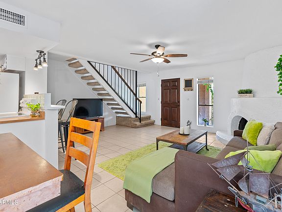 Welcome to this charming 2-bedroom, 1-bathroom townhome, ideally located for convenience and relaxation. Inside, enjoy no more popcorn ceilings, fresh paint, new ceiling fans, light fixtures, and a new shower enclosure. The high HOA fees include roof maintenance, exterior unit maintenance, roof repair and replacement, water, sewer, garbage collection, pest control, cable or satellite, front yard maintenance, and common area upkeep. A private tropical yard features rare edible trees. Extra parking is available on Peoria, and the park, playground, and pool are just a short walk away!