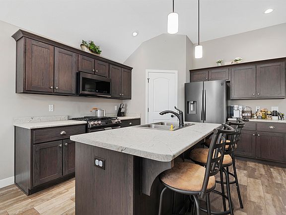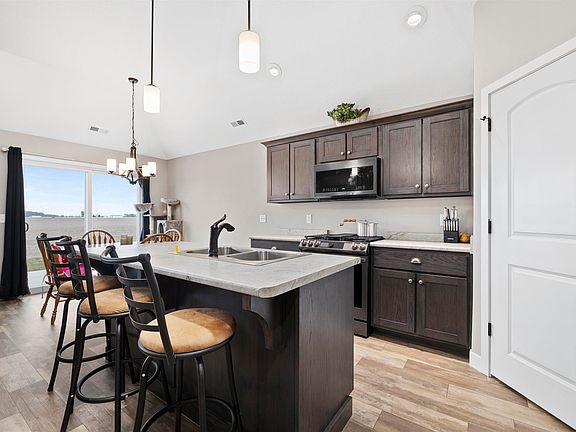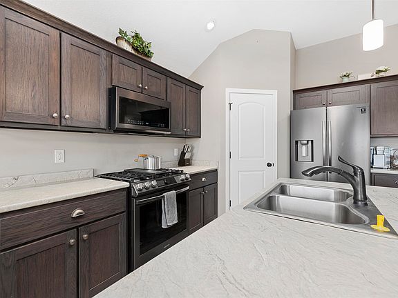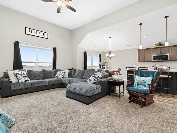 Come check out this virtually new open concept villa. The elevated ceilings through the foyer, kitchen, nook, and great room give the living spaces a great feel. In the kitchen you will find beautiful cabinets with soft close doors and dovetailed drawers. Off the great room, the master bedroom is secluded from the other bedrooms providing great privacy. The front of the home is a combination of stone, vinyl siding, and shake for low maintenance. Speaking of maintenance you won't have any mowing or snow removal to worry about here! Just move in and enjoy!