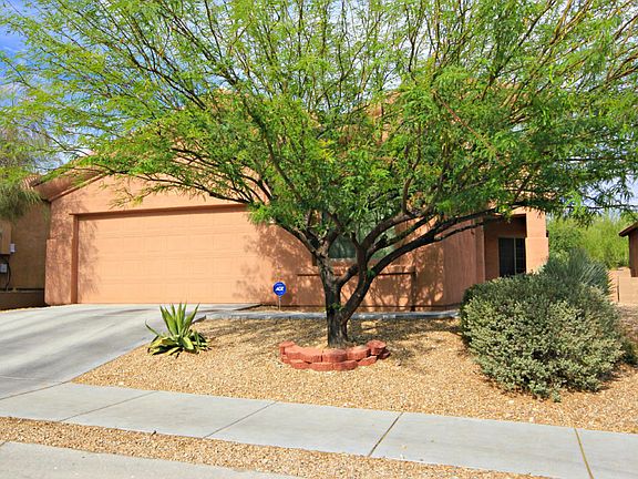 This beautiful Pepper Viner home is nestled in the desirable Rita Ranch community which features nearby basketball court, park, jogging path and more! This contemporary property hosts 2 extended garage spaces, 3 baths, 2389sqft, carpet and ceramic flooring, 3 bedrooms on the first floor, and 2 bedrooms as well as a loft upstairs. The spacious kitchen has upgraded cabinets and a breakfast bar, leading to the massive great room with sky high vaulted ceilings! Step out back to enjoy your flagstone patio with real fossil inlays, outdoor fireplace, high end artificial turf and raised flower/vegetable bed. This property is in magnificent condition and truly is a must see!