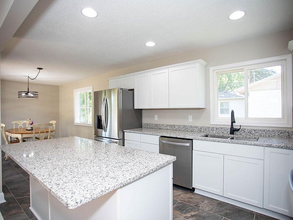 Totally updated 4 bedroom + den/office split entry with 3 car attached insulated and heated garage. Home features new: exterior doors and patio door, interior doors & knobs, wide trim & casing, kitchen cabinets, solid surface counter tops, tile flooring, stainless steel appliances, faucet & handles. New Lowe Windows. Bathrooms have new tub & fixtures & tile. New carpet in lower level. New insulation in house & garage. New 2 level deck & railings. New privacy fence. New flooring, all new kiNew light fixtures & landscaping. Private huge yard. Refinished hardwood floors. Maintenance free exterior including maintenance free soffit and facia. Storage shed in back yard.