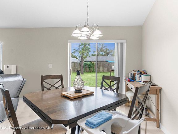 AFFORDABLE NEWER HOME!! MOVE-IN READY!! Built in 2019!! This upgraded home offers 3 bedrooms + 2 bathrooms + large great room + dining from + OPEN FLOOR PLAN and HIGH CEILINGS + large fenced in backyard with privacy fence + NO HOA and NO FLOOD (X Zone) + situated on a 1/4 acre in a great location in 24608 and close to everything!! Enjoy the upgraded kitchen with granite counter tops, breakfast bar, stainless steel appliances, a place in the kitchen for a kitchen nook table and the open floor plan that gives you views of your home and backyard through the glass sliders! The high ceilings, large windows, and open floor plan make this home feel light, bright, and spacious!! Beautiful large ceramic tiles (20x20) throughout the foyer, kitchen, dining room, large family/great room, and both the master bathroom and second bathroom! Great curb appeal with the level, flat lot and beautiful green yard in front and in back! Gates on both sides to park your toys behind the fence in your side yards! The split floor plan gives privacy to the master suite! The master bedroom has a large walk-in closet and ensuite bathroom offering granite countertops and real wood, white, shaker cabinets with a walk-in shower! The second bathroom offer a shower/tub combination! Great location and zoned for Explorer K and Springstead High School! Close to groceries, shopping, movies, coffee shoppes, schools, and the Suncoast Parkway for easy, fast access to Tampa! 10-15 minutes to kayaking and paddle-boarding the clear Weeki Wachee River, swimming with the manatees, watching the sunset at the beach at Pine Island, boating, jet-skiing, fishing and enjoying the Gulf of Mexico! 1 hour+ to TOP US BEACHES. Come see this newer, affordable home! Beats renting and throwing your money away paying someone else's mortgage...pay your own and build equity, build your future in your own home!! Call to see it today! Shed in the backyard is excluded, but negoatiable if buyer is interested.