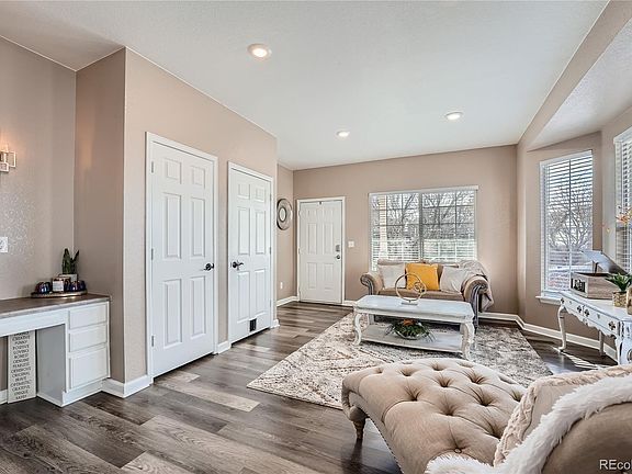 GORGEOUS RANCH HOME located in a wonderful community!! The minute you walk in you will fall in the love with the open layout and gleaming laminate wood floors throughout!! Gorgeous kitchen with 42" cabinets, stainless steel appliances, dining area, pantry. The beautiful kitchen overlooks the family room featuring built-ins and a gas fireplace perfect for those snowy nights. Formal living room gives this home the perfect layout for hosting those holiday gatherings!! Master suite with walk-in shower, oval tub, his and her sinks, large walk-in closet AND your own private sliding door leading to the backyard! Two additional bedrooms with their private bathrooms makes this home perfect for everyone!! You'll love your partially finished basement featuring a 4th bedroom and bonus room for games, cozy movie nights or turn it into your own private gym. Enjoy hosting those summer BBQ's in your perfect sized private backyard with a concrete patio!! Close to schools, parks, trails, rec center and restaurants . Easy access to highway 2, highway 76 and E-470. Only 15 minutes to DIA and 25 minutes to Downtown Denver. Don't miss your opportunity to own this AMAZING HOME!!