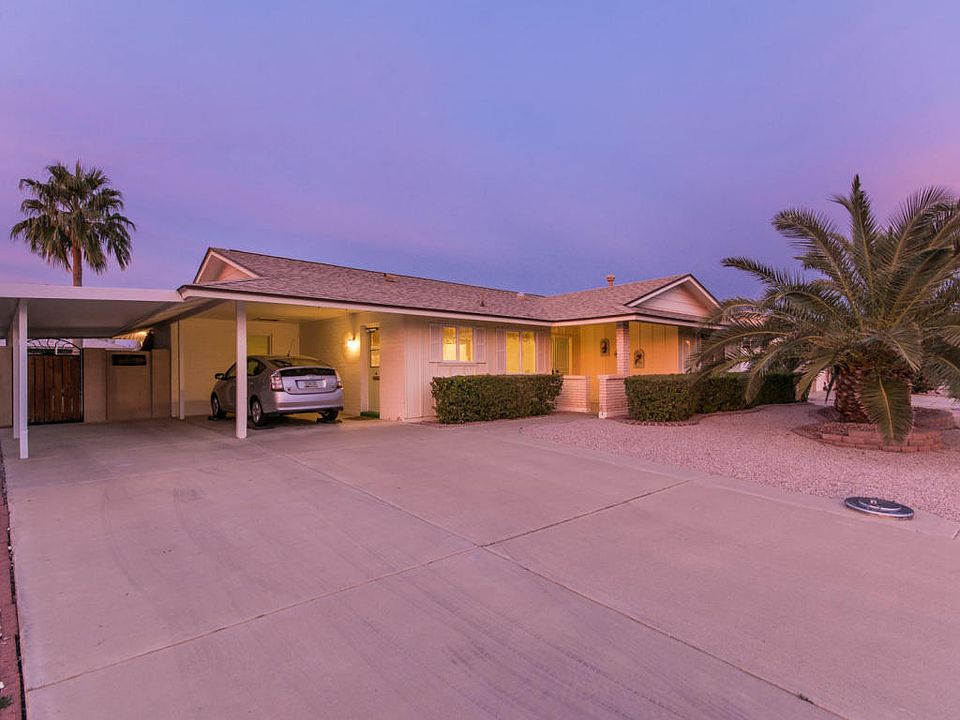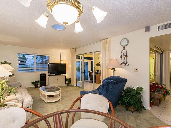 This charming home makes you feel like you''re always on vacation! The Arizona room in the center of the house has been closed in to create an office/dayroom. It has light colored tile in all the right places and the living room and bedrooms have lovely celery green carpet. Solar tube lighting and large windows add to the homes bright cheerful ambiance.The kitchen has newer appliances & a handy trash compactor.The a/c unit and roof were redone recently. The backyard is ''''to die for''''.A sparkling,custom designed heated pool w/heated spa works by remote control.Turn on the spa from your recliner and it''s ready in 1/2 an hr. The entire yard is paved & landscaped. After dark the pool,spa,shrubs,trees and lamp posts put on an amazing show!!