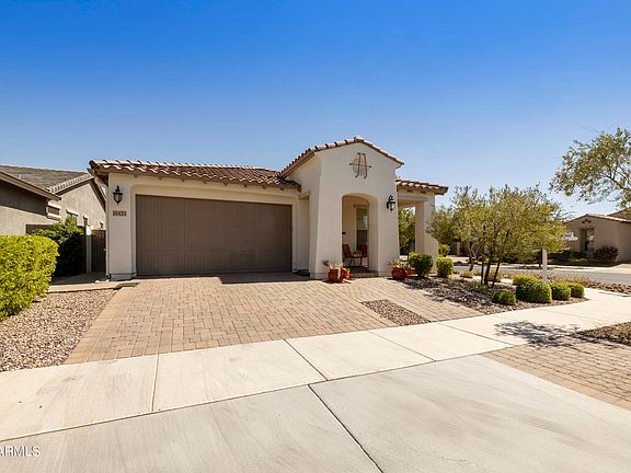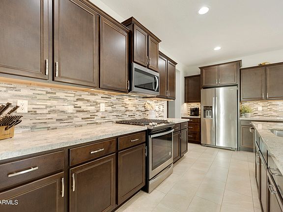 2bdrm/2bth home located in an active adult community. 1,694 sq ft home features an extended den, & great rm which boasts an open-concept plan with a 12' multi-slider off the nook, allowing ample natural light to flow through. The kitchen is equipped with SS appliances including a gas stove, staggered maple cabinets, granite counters, & a lg island, complemented by a W-I pantry & a laundry rm with a utility sink. Primary bath offers a raised vanity with dble sinks, W-I shower, & W-I closet adding a touch of luxury. This home has a 2 car garage, on a corner lot that backs to a common area. The extended covered patio boasts travertine overlay, gas fire pit & turf providing a low maintenance yard! Community offers pickle ball, tennis, bocci ball, a club house with workout facility & much more
