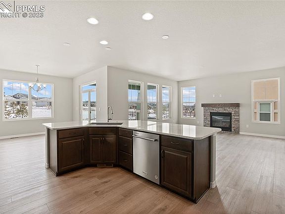 EST. BUILD COMPLETION: January 2023. This stunning two-story home in Cordera includes a full finished basement with 9' foundation walls, a 3-car garage and has 6 bedrooms and 4 bathrooms! Space galore!! The kitchen includes an upgraded KitchenAid appliance package with a 36” gas cooktop with a hood that vents to the outside, an built-in oven/microwave combo and a KitchenAid dishwasher. The kitchen opens to the great room and spacious dining area, a great atmosphere for entertaining friends and family. The covered patio with gas-line pre-installed for BBQs is also a great space to entertain! This home comes with beautiful interior finishes including a stone fireplace with a stained box mantel and luxury vinyl plank floors on the main level. Custom master bath layout also includes a large shower with Euro glass enclosure. The laundry room is on the upper level convenient to most of the bedrooms and also includes a free-standing sink and cabinets. The basement rec room is pre-wired for surround sound and includes a wet bar rough-in. This home also backs to open space and has mountain views. With air conditioning included, this 6-bedroom home is a must see.