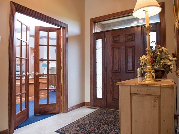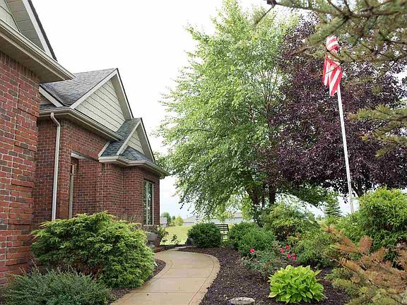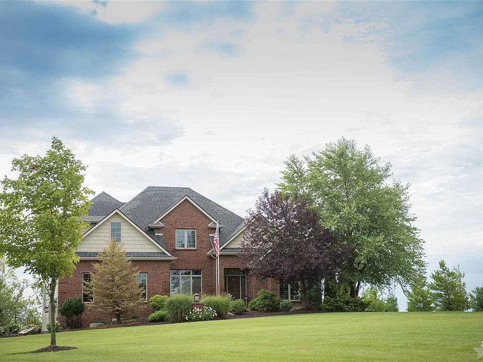 This Roanoke, Indiana home offers a private setting with acreage and pond within minutes of Fort Wayne and Roanoke. The covered front entry opens to the foyer which joins the library by French doors. The dining room overlooks the large front yard and the entry's reflection pool. With skylights, cathedral ceilings and a brick fireplace, the living room is both cozy and bright, with great views of the back yard overlooking the pond. The large kitchen and breakfast area open to the sun room, a great place to gather and relax by the fireplace. From there, the deck provides easy access to the back yard and patio below. The main level master suite is spacious and enjoys a private deck walkway to the main deck and sunroom. All upper level bedrooms are well placed off the landing which provides an ideal spot for a reading nook. Largest room, currently used as a home office, is full of charm, much due to the dormers' niches. Walk out lower level has a two-sided fireplace enjoyed by the billiard room and family room. Sliders off the kitchenette and game area open to a covered patio. The large laundry room, with a great deal of cabinet and counter space, also makes a fantastic project room. The large unfinished part of this lower level holds potential for a theater room or fitness area. The attached oversized garage has high ceilings (such high ceilings in a garage allow for clever pulley storage for bikes and/or overhead storage). Additionally, the detached 3 bay outbuilding, with its proximity to the pond, could also function beautifully as a boat or swim house. The covered porch on this outbuilding adds to the charm. Includes irrigation system, 6" well with constant pressure pump, and maintenance free deck. Average Utilities: Gas $142, Electric $253, Trash $27.