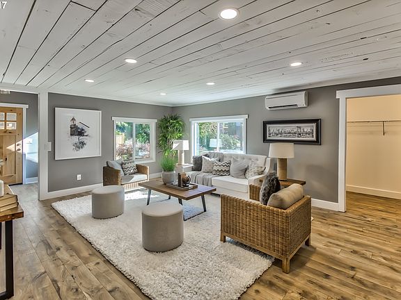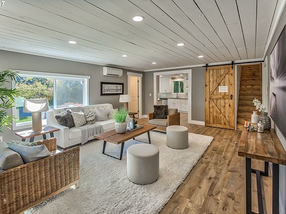 Down to studs, stunning remodel! All new electrical wiring, panel, & meter, new plumbing & main line from street, new HVAC, 30 yr roof, vinyl windows. Energy efficient LED lighting. Custom touches throughout - barn door, foyer bench w/ coat hooks, exposed original shiplap ceilings, pergola over the patio w/ LED lighting. 3cm thick quartz counters. Soft close shaker cabinets w/ 42" tall uppers. MASSIVE yard with a shed & chicken coop!