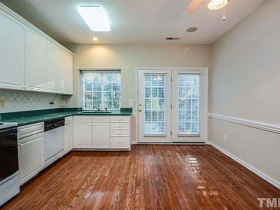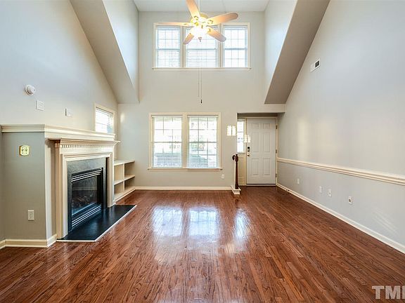 This Raleigh two-story offers hardwood flooring, a fireplace, and a one-car garage. Upgraded features include fresh interior paint throughout. A community park is part of the HOA.