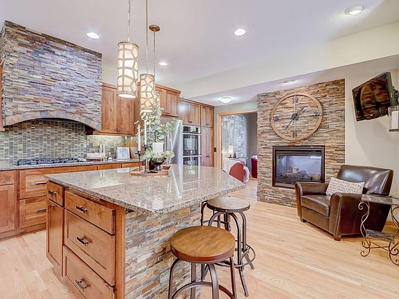 This meticulously maintained property stands out with distinctive features and recent upgrades! The stylish kitchen offers storage, natural finishes, and upgraded appliances, with a shared gas fireplace to the dining room. Refinished hardwood floors in 2023. Informal dining with extra cabinetry leads to the deck. Sun-filled living room has a wood-burning fireplace and built-in shelving. Main level includes an office with built-in storage, mudroom, powder room, and 3 car garage access. Upper level has a primary suite with walk-in closet featuring stacked laundry, private bathroom with separate shower & jetted tub, 3 more bedrooms, and updated bath. Lower level features a family room, flex room, bedroom, heated-floor bathroom, and laundry. Picturesque backyard with mature trees, deck, and updated underground pool. Pool is low-maintenance with an intellichlor system. The property's proximity to parks, trails, dining, retail, a superb school district, and more make it even more desirable.