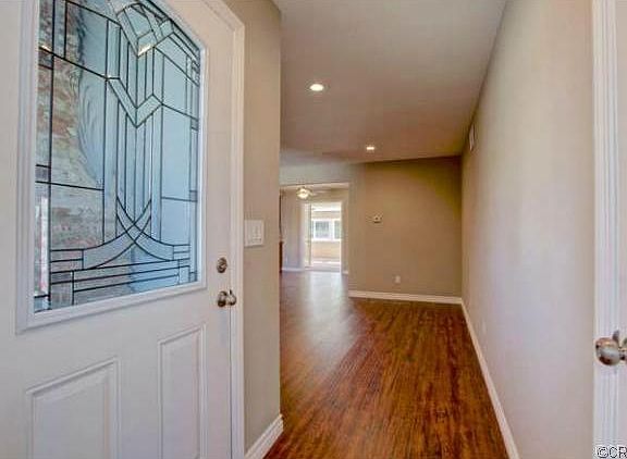 Perfect Family Home, Beautifully Rehabbed In/Out! Wonderful Curb Appeal, New Exterior Paint, Dual Pane Windows,, New Garage Door, X-large Cement Driveway. Leaded Glass Front Entry opens into a spacious Living area w/ Wood Composite Plank Flooring thru to the Kitchen/Hallways. Stacked Stone Fireplace w/ Gas Fire logs included, Smooth Ceilings, Recessed Lighting, Custom Two Tone Paint, 4.5" Base & All New Casings, 6 Panel Entry Doors/Hardware. Brand New Kitchen! Loads of Cabinetry, Stainless Appliances, Brushed Nickel Fixtures/Hardware, Granite Counter tops, Glass Tile Backsplash, Recessed Lighting, Double Sink. Added bonus, the Laundry Room just out side the kitchen is separate & a great size! Folding Counter & enough storage room for those big items from the kitchen or extra pantry area. Also there is an added bonus room about 150 sqft not included in the square footage of the house with an additional fireplace & direct access to the huge back yard! Both baths have been Completely Remodeled Tile surrounds, Glass Tile Accents, New vanities, Granite Counter Tops. All rooms are Good Size with Mirror Closet Doors. Very Pretty. Back yard is Private has 2 sheds and an awesome Orange Tree ripe for the picking! Swinging Chair is included in the sale!