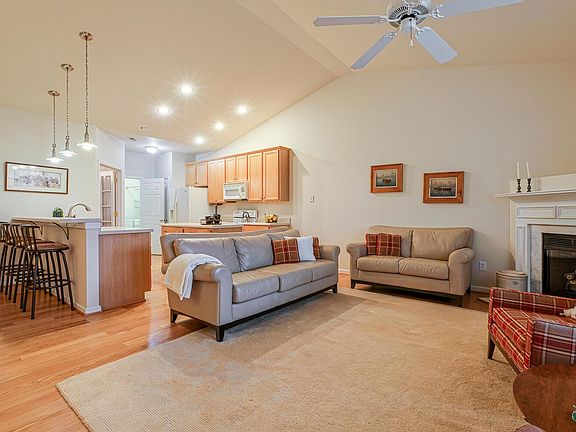 Beautiful Townhome in Raven Pointe with private backyard! New Roof (2019). Hardwood Floors in Foyer, Kitchen, and Family Room. Open Floor Plan includes a Bright Kitchen and Family Room with a Cathedral Ceiling and Gas Fireplace. Popular floorplan with MAIN FLOOR Owners Bedroom, Walk-in Closet and Two Additional Closets, Double Vanity, Garden Tub and Separate Shower. Another MAIN FLOOR GUEST Bedroom with Full Bath. 2nd Floor Bedroom includes a Walk-in Closet and Full Bath. Relax after a long day in peaceful Sunroom. There's also a Community Pool to enjoy on those hot summer days. Low-maintenance living as HOA handles landscaping. Close to Area Parks, Greenways, Falls Pointe Shopping, Falls Lake, and easy access to I-540!