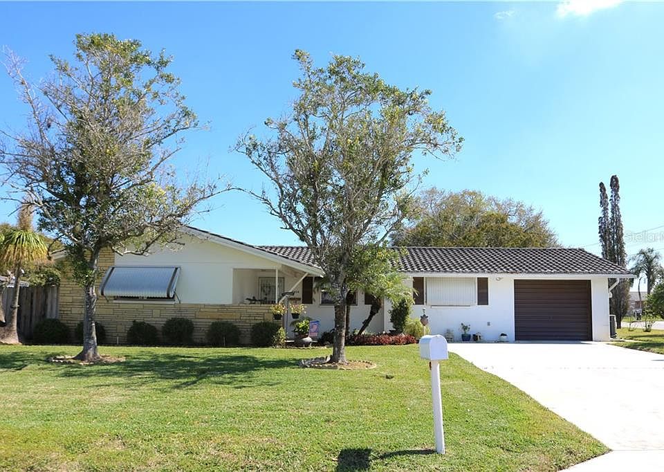 Beautiful 2 bedroom and 2 bathroom home located on a big corner lot. This home has mature landscaping throughout the property.As you walk up the oversized driveway to the front door you notice a small porch area that would be great for sitting and enjoying the beautiful Florida weather. The home has a nice open feel with the living room/dining room combo being off the kitchen. You will find both bedrooms on the same side of the home. This home features an oversized garage that has tons of space for storage. The home has a screened in porch that looks out to your huge fenced in yard. Make sure to set up an appointment to see this beautiful home today!