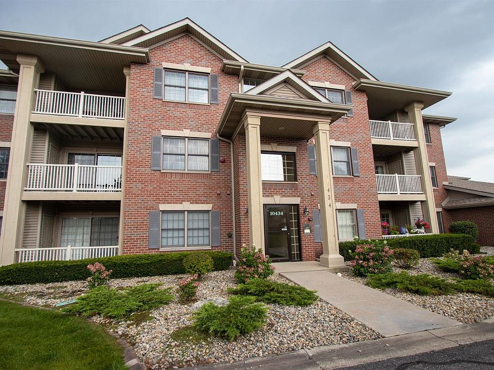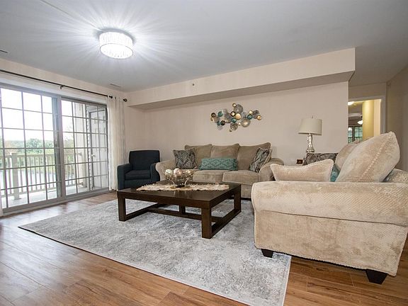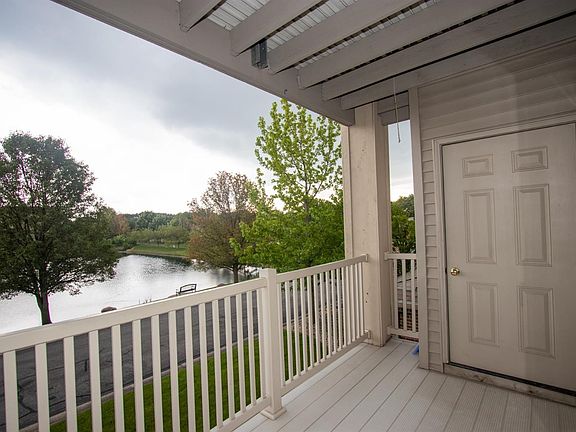 This b+eautiful, unique, second floor condo with ELEVATOR! Has on oversized balcony that overlooks a peaceful pond. Great place to drink your morning coffee. Inside has 3 massive bedrooms, 2 that have en suites with large closets! Great for Guests! Brand new cabinet doors, new sound proof vinyl/wood looking flooring in the living, dining room, hallway, and foyer. New stove and microwave! Solid surface counter tops. Separate laundry off of the kitchen. Newly/Professionally painted throughout! 1 car private garage. Close to everything with easy highway access. No Maintenance! New Furnace, AC, and Water Heater.