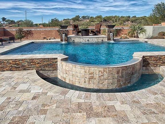 Newer 4BR/3.5BA highly upgraded AF Sterling home on corner lot is situated in a gated enclave of only 16 homes in coveted Oro Valley. Striking Contemporary boasts an open floorplan spanning a Living/Bonus Room and Formal Dining Room, Great Room w/gas ledge Fireplace and retractable sliders, plus Chef's Kitchen hosting Breakfast Nook and large Island w/custom Granite. Spacious Master Suite hosts dual sinks, walk-in shower & walk-in closet. 2nd Bedroom hosts ensuite. Added amenities include Venetian plaster, surround sound, skylights, water softener, and 3-car garage. Fabulous outdoor oasis features extended Travertine patio, gorgeous pool with multiple fountains and Travertine/stone accents, lawn accents, plus Mountain and City light views. Convenient to shopping-dining-golf-entertainment!