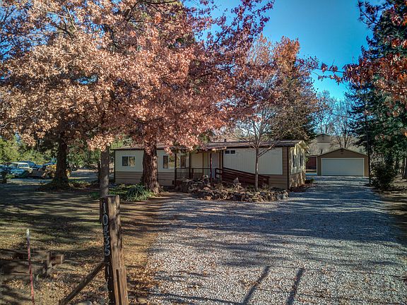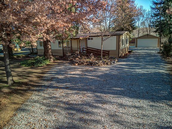 Beautiful setting with mature trees, located within minutes from town, is this charming , updated, 3 bedroom, 2 bath mobile home on permanent foundation. Must see to truly appreciate what this peaceful, all level, useable 2 acre property has to offer, from finished detached garage, to fenced area for large garden.
