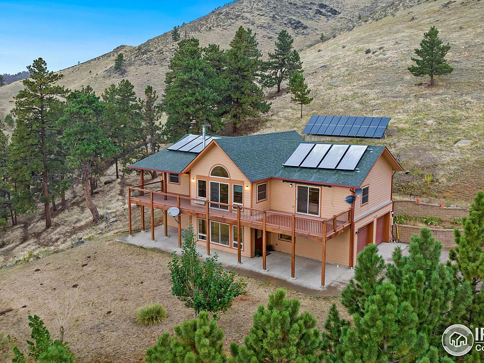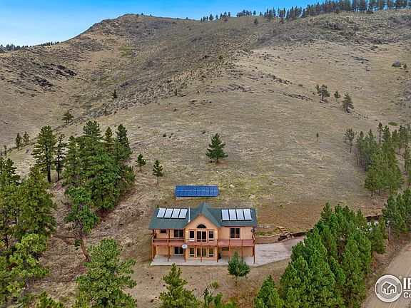 Close in Mountain Home in Restone Canyon on the Westside of Horsetooth Rock. Sustainable Home, with Passive Solar. Unobstructed Views all the way to Pikes Peak. Designed by Dr. John Fitch as his own home. 3 Bedrooms, each with ensuite bathrooms and walk-in closets. Open Floor Plan with a Great Room off the Kitchen, Vaulted Ceilings, Wood Stove and Views into the Valley of Redstone Canyon. Expanded Deck with Entries from each Bedroom. 40 Acres of your own Paradise! Easy Access to Fort Collins/Loveland.