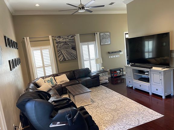 Family-style home with 4 bedrooms, 3 full baths and plenty of space. The large fenced backyard is pet-friendly. Double car garage with epoxy floors, insulated walls with built-in air conditioning unit along with the long driveway that will accommodate 6 vehicles. The master shower has a rain shower head, pressure body spray, handheld showerhead, and traditional shower head. The kitchen is an open kitchen concept with a gas stove and a slim-profile microwave. 10ft ceilings with recessed lighting throughout the house, along with crown molding in each room. The house sits on a corner lot, with a wrap-around porch. Upgraded variable a/c unit with a smart thermostat to control levels of comfort. CURRENTLY OCCUPIED - DO NOT DISTURB TENANT Available after April 1st, 2025. The renter is responsible for all utilities. Must comply with neighborhood HOA rules and regulations. Accepting applicants with credit score 650+ or higher.