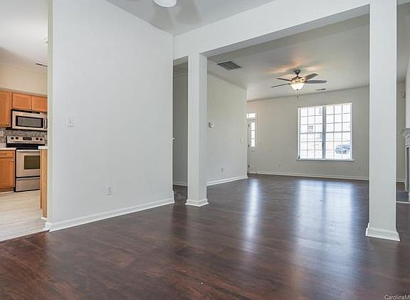 Beautifully upgraded two story home with attached two car garage. This home features three spacious bedrooms plus bonus room, with two and a half bathrooms! Home has been freshly painted with NEW dark laminate hardwoods on the main level and NEW carpet throughout the second floor. Community boasts a pool and is easy access to shopping, dining and I-485!