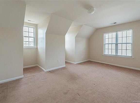 This Huntersville two-story home offers a gas fireplace, stainless steel appliances, master bathroom dual sinks, separate tub and shower, master walk-in closet, open deck, and a two-car garage. This home is vacant and cleaned regularly.