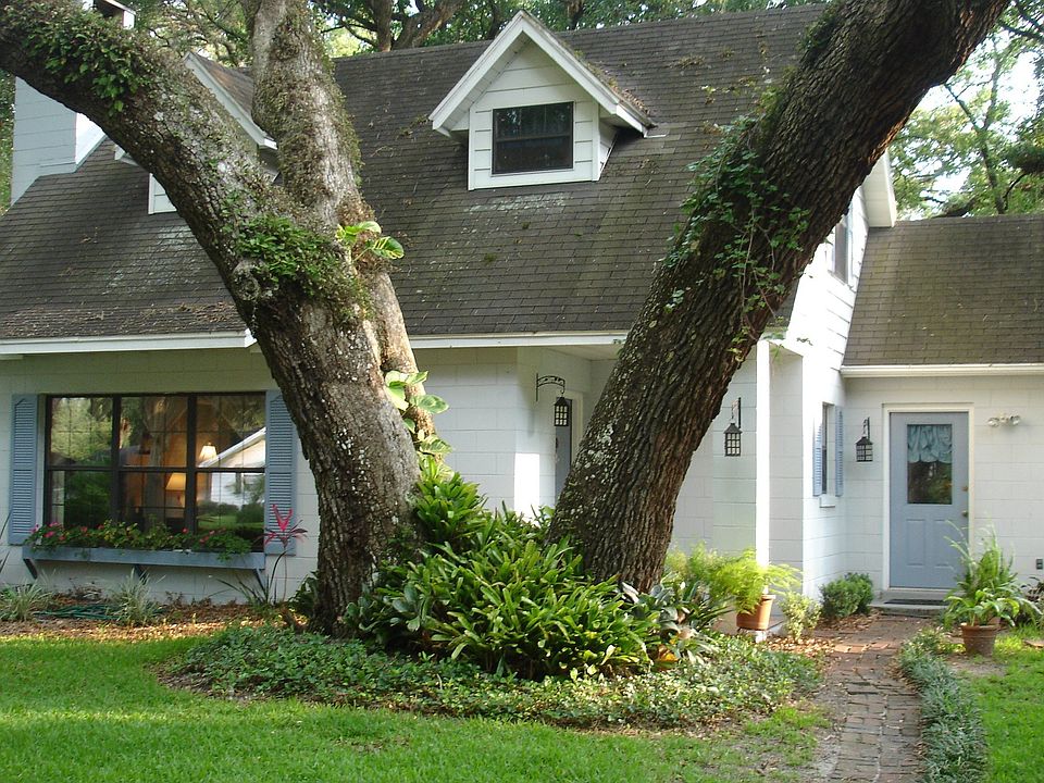 WELCOME HOME This 3/2 sits on a beautifully landscaped corner lot with a riverfront view. Semi circular drive,brick walks, and covered front porch make this home a real treat!Close to public boat ramps that lead from chain of lakes to ocean. Living room has 6 ft wood burning fireplace for cozy nights. Owner will assist. Tera Romero at 352-434-1605