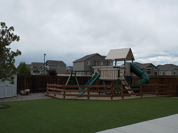 Beautiful home in Lorson Ranch. Home features 4 Bedrooms and 4 bathrooms. Upon entering the home you will find a nice sized living room, dining area, half bath and kitchen. The upper level has a beautiful master bedroom with a 5 piece bathroom and walk in closet. the other two bedrooms share a jack and jill bathroom. the fully finished basement has a large family room bedroom and a beautiful tiled shower in the bathroom. The backyard is xeroscaped and has a large playground and storage shed. Don't miss out on this!