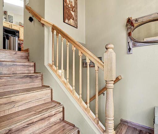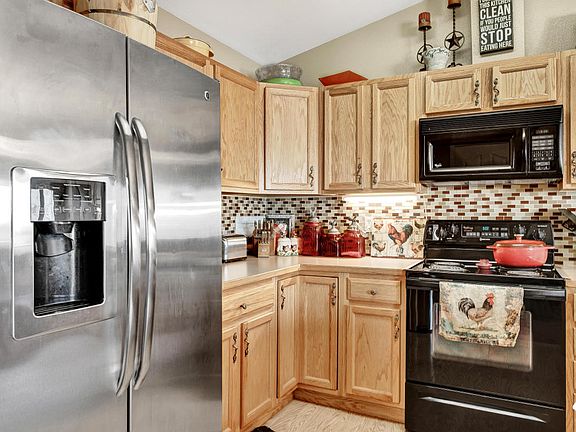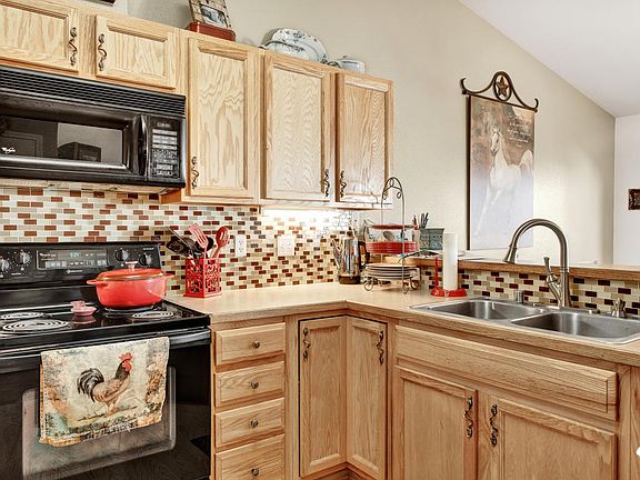 Lovely cozy split level home, open living, stone fireplace, gorgeous back splash in kitchen, deck off the kitchen with larger yard and apple tree. New flooring and double gate for toys. 1 bedroom up and 2 down. This is a perfect starter home! Make your appointment today.Dues cover snow removal.