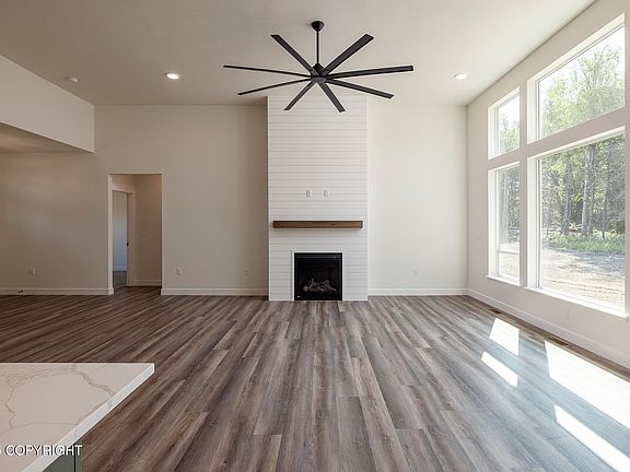 Custom Ranch-Style Retreat in South Village - Move-In Ready Luxury! Be the first to claim this stunning ranch-style home in Palmer's coveted South Village Subdivision. Spanning a versatile floor plan, this 3-bedroom (plus office or optional 4th bedroom) masterpiece boasts a 12' great room with a wall of windows, flooding the space with natural light and breathtaking mountain views.The gourmet kitchen dazzles with gorgeous quartz countertops, stylish black fixtures, custom tile backsplash, ceiling-high cabinets for maximum storage, and a walk-in pantry. The luxurious owner's suite is a royal escape, featuring an oversized tile shower with dual showerheads, a freestanding tub, and an enormous walk-in closet. A bonus room above the XL 3-car garage offers endless possibilities home gym, media room, or studio. Located near top-rated Colony Schools with easy access to Anchorage and JBER, South Village blends Alaskan serenity with urban convenience, offering city water, paved streets, and trail access. Don't miss your chance to own this custom-crafted haven schedule a private tour of South Village today! Key Features: Modern Ranch Design: 3 bedrooms + office (or 4th bedroom), 12' great room ceilings, wall of windows Gourmet Kitchen: Quartz countertops, black fixtures, custom tile backsplash, ceiling-high cabinets, walk-in pantry Luxurious Owner's Suite: Oversized tile shower with dual showerheads, freestanding tub, massive walk-in closet Versatile Spaces: Bonus room above XL 3-car garage for flex use Prime Location: South Village with mountain views, paved streets, trail access, city water, near Colony Schools Secure Your Alaskan Dream Home - Book Your Tour Now!