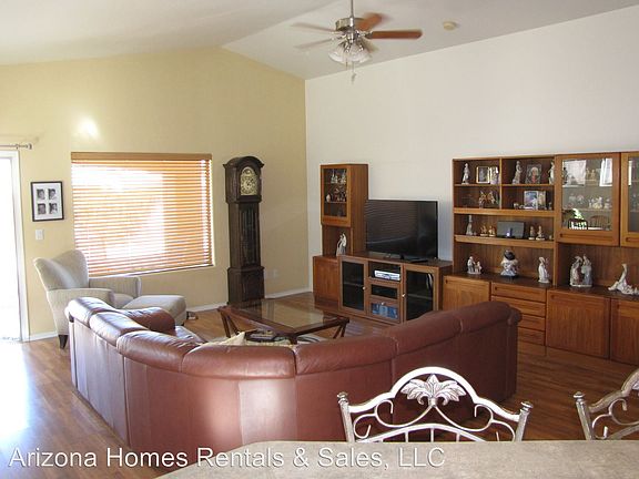 Spacious great room floor plan with high ceiling. Large inviting kitchen, large pantry, Kitchen cabinets Pullout shelves, island with breakfast bar. Wood laminate flooring in great room and hallway. Washer/dryer included. Tile in Kitchen and Bathrooms. Master bedroom has his & her walk in closet, private bath with roman tub/shower, separate water closet, executive high vanity with double sinks. Low care landscaped yard with extended patio, Automatic irrigation system keeps plants watered. Mail box is in front of house. Two community pools, 3 play grounds, basketball & sand volleyball courts all located within our community. Vail School district. Call (520) 405-8601 for more information and for move in special