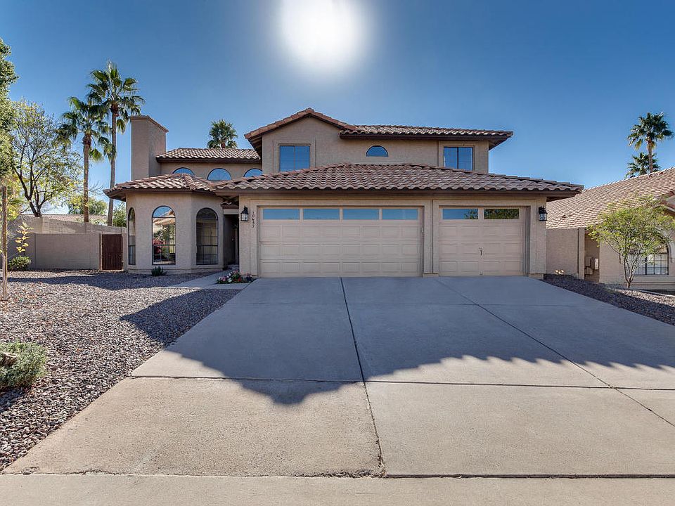 This gorgeous home has been brought back to life. Situated within view of the McDowell Mountains and amongst desirable schools. Perfectly appointed 4 bedrooms, 2.5 bath, 3 car garage home with a pool. Enter the elevated landing that leads you to the living and dining room and beyond to the kitchen and family room. Natural lights flooding from all directions. Pretty wood tile flooring perfectly matched with freshly painted walls. 3 arch windows outline the living room boasting a wood burning fireplace. Textured tiles and distressed mantle bring character and charm to this space. Fun dining light fixture will complement any table. Continue to the heart of the home, kitchen and family room. Entertainment is made easy here. Bright white cabinetry, stainless steal appliances and granite Mountain View(s), North/South Exposure