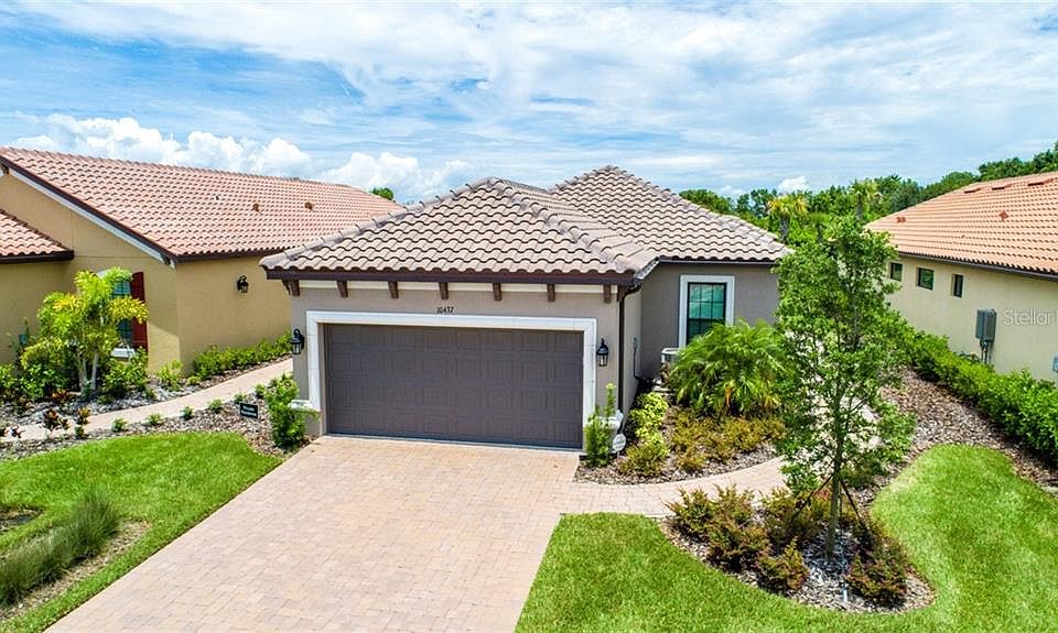 This single family maintenance-free exterior home is more than BRAND NEW! Owners have only occupied it for vacation. Take a stroll down the brick paved walkway to enter this amazing home! The moment you walk into this bright and airy open floor plan you will feel like you are in a model home. Kitchen Boasts granite counter tops, stainless steel appliances, as well as 60 inch cabinetry with under lighting. The bathrooms both have granite as well as decorative tile inlay in the showers. All windows are hurricane impact rated. Ceiling fans and window blinds have been added. Garage floor has been painted and sealed. Relax on the amazing extended, stone paved, screened in lani with a glass of sweet tea in the evenings. NO Back yard neighbors to disturb you! Lani is already prepped to add gas outdoor grill/kitchen. When you are looking to interact with your neighbors there are tons of amenities in this gated community. Tennis, Resort style pool, Fitness center, Clubhouse, tot lot, and much more! This home is located conveniently right off of Interstate 75 so you can easily access Sarasota, St. Petersburg, Tampa, and more within a short commute! Check it out now as it wont last! The Moccasin Wallow Golf Club is just minutes away (public course with 18 holes and a bar and grill).