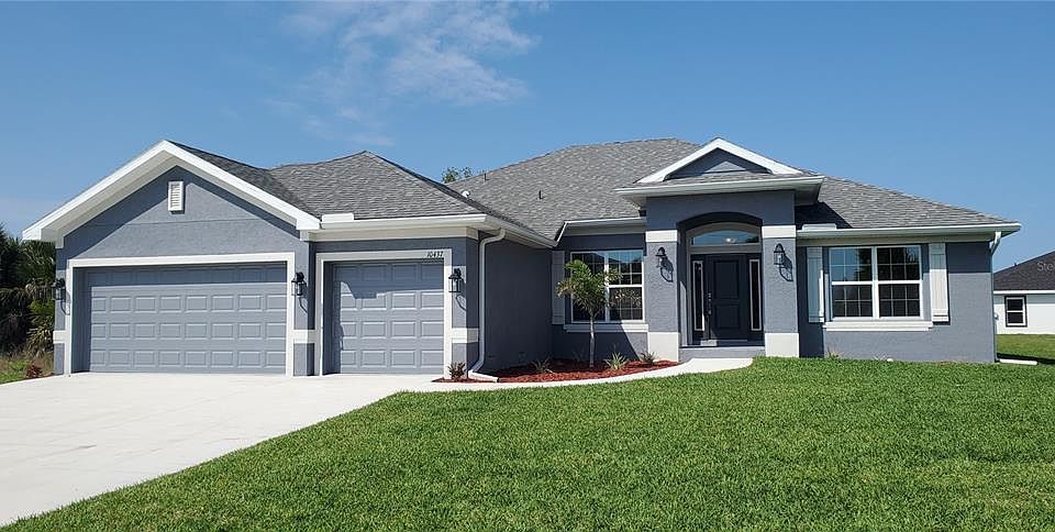 MOVE IN READY!!! This beautiful New Construction, home has 2265 SQ. FT. of heated space, with 4 bedrooms, 3 bathrooms (POOL BATH) and a 3 Car Garage! The Upgrades Included: Open Floor Plan, Porcelain Plank Tile- All Except Bedrooms, Bathrooms are Tiled, Pair of exterior French- Glass Doors leading to 23' x 8' Covered Lanai, Granite Counter tops in Kitchen and Baths, Stainless Steel Appliances, Garbage Disposal, Upgraded Cabinets, Step Ceiling in the Primary BDRM, a 5 FT. Tiled Shower w/ Tiled walls and floor in Primary BTHRM ILO of Garden Tub, & Irrigation System w/ Floratam Sod. All of our New Homes come with a 1 year/2 year/10 year Warranties. Move in Worry free! ** REALTORS are required to be present on Initial visit to register your Home buyer and must obtain a completed Co-Broke Form ~~ Subject to Errors & Omissions ~~ Room Feature: Linen Closet In Bath (Primary Bedroom).