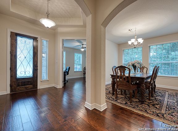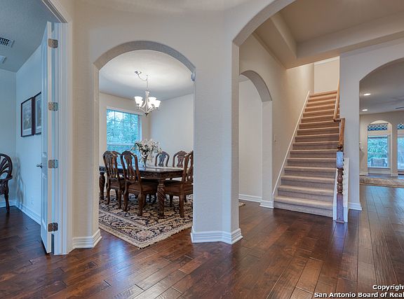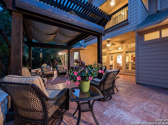 One-of-a-kind Beauty on tree-studded greenbelt located at the end of a cul-de-sac. This home has it all from every upgrade imaginable to solar panels for year round savings. The curved architecture invites you through an open plan that lives as a one story w/ flex room/half bath + balcony upstairs. All bdrm on main floor including a second master/guest suite. .29 acre lot is a true oasis on a greenbelt for absolute privacy. Expanded patio, pergola, fieldstone seating area. A true gem that's better than new!