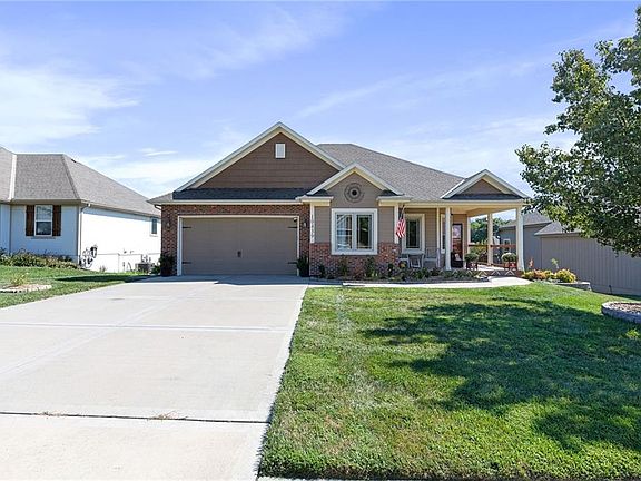 Come home to this picture perfect blend of modern farmhouse and contemporary suburbia. The large front porch is as welcoming as it is spacious. Upon stepping inside, you'll be greeted by a beautiful new fireplace waiting to warm the winter nights. The open concept flows into the eat-in kitchen where granite counters and stained cabinets are surrounded by wainscoted walls in an updated version of traditional gray on white. The chic barn door hides the laundry room, conveniently located on the main level. To the right, the master suite sits separate the additional two bedrooms to retreat to privacy at the end of the day. In the remodeled master bath, a double vanity and makeup vanity allow ample space to get ready (or unready) for the day. Having company? Take them downstairs to the large recreation room that walks out to the fully-fenced back yard. An additional bedroom with a large walk-in closet sits on the opposite side in case your guest needs to stay the night. The office on this level can also serve as a non-conforming bedroom! If you'd rather spend your time in the fresh air, enjoy it under the shade of the covered deck, or set up an umbrella and chairs to recline on the patio. Don't forget to cool down during the summer months in the neighborhood pool! New luxury vinyl plank floors and tile have been added, and landscaping completely redone in the last year. KC address in the Liberty school district.