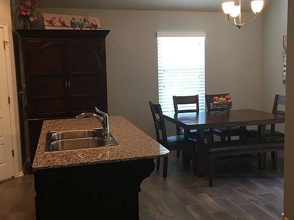 Immaculate, almost new, tons of upgrades: extra thick carpet padding, tile, master bath vanity, walk in shower, extended covered back porch, large back patio, granite, floored attic, insulation, metal fence posts and treated lumber, extra lighting in kitchen and master bath. This home features an open living concept; Lg island & room for dining table. Split floor plan, big walk-in closets, trey ceilings, lots of arches, granite counters, stylish wood plank tile, MB w/subway tile decor. Backs to protected greenbelt. Must see!