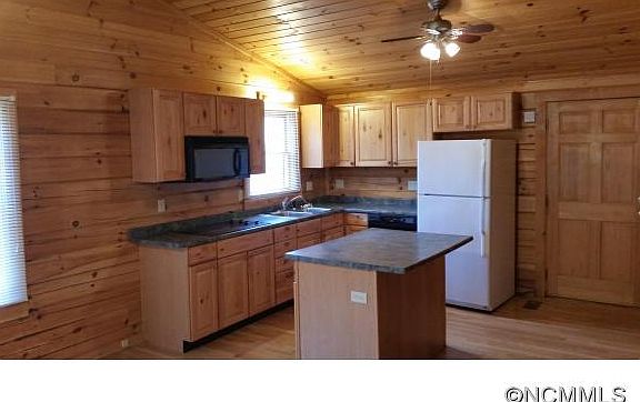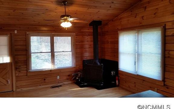 -Cozy log cabin on level fenced lot with creek. Open floor plan with Cathedral ceiling in LR w/woodstove. 5x8 storage rm not included in SF. Covered back porch. Outbuilding (640 SF) with electricity. Pool table remains. Private setting. Ideal for outdoor entertaining. Edge of property is in Flood plain.